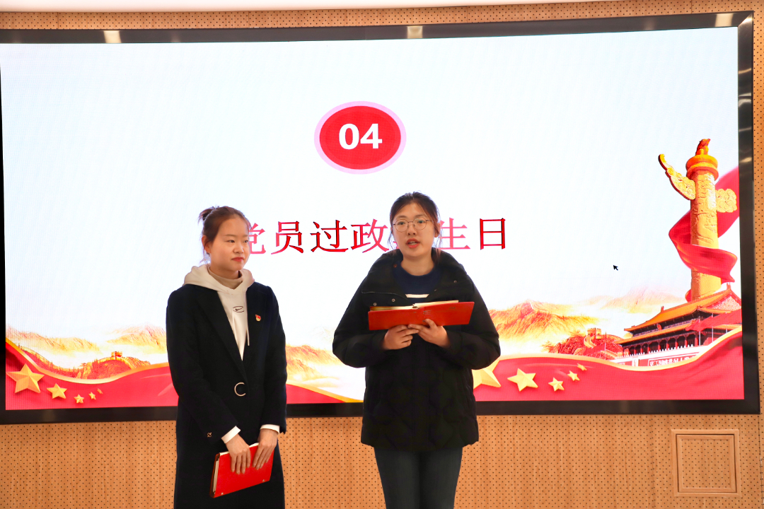 本次活动分为仪式部分、诵读党章、预备党员转正和研究学习四部分。