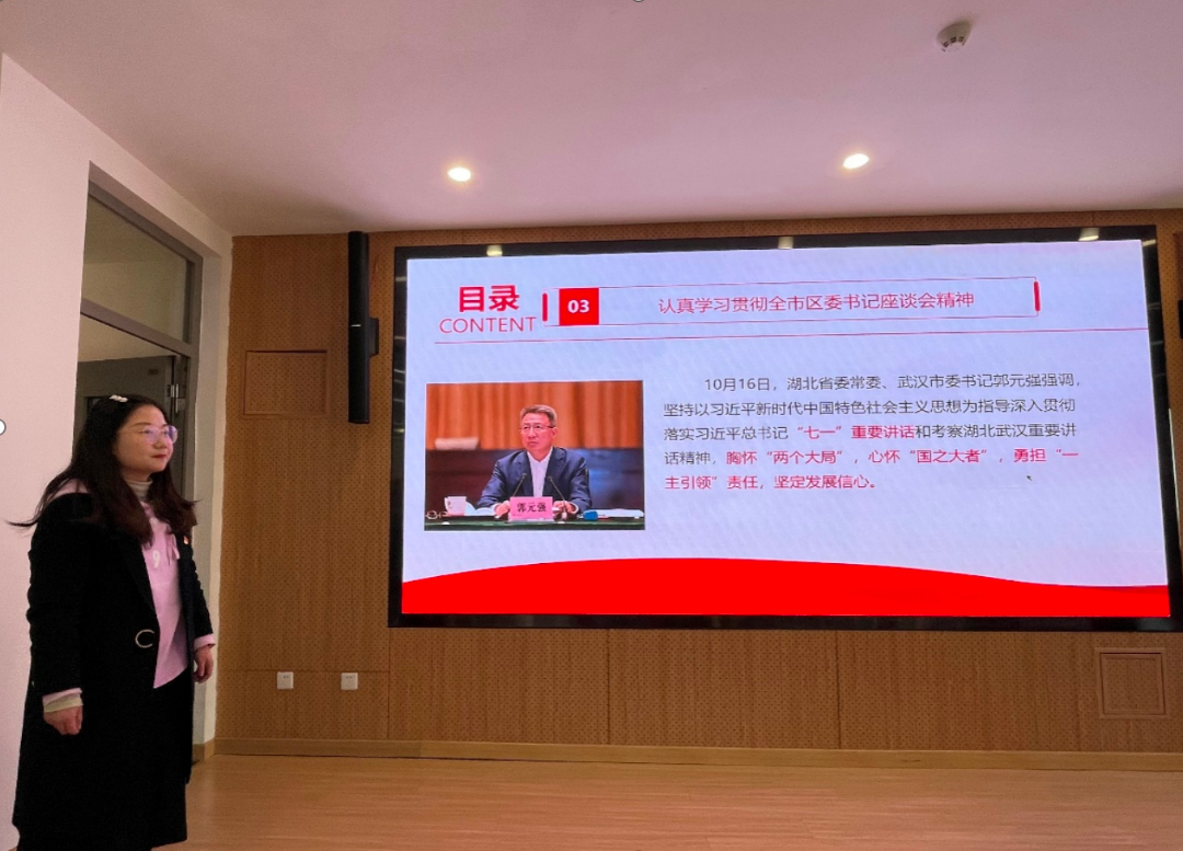 为深入学习贯彻党的精神,并为我市第十四次党代会做好准备,2021年11月23日,武汉经开外国语学校党支部全体党员开展了11月支部主题党日活动。本月主题党日活动由第二党学习小组组长唐星燕同志主持,全体党员教师参加了本次学习活动。