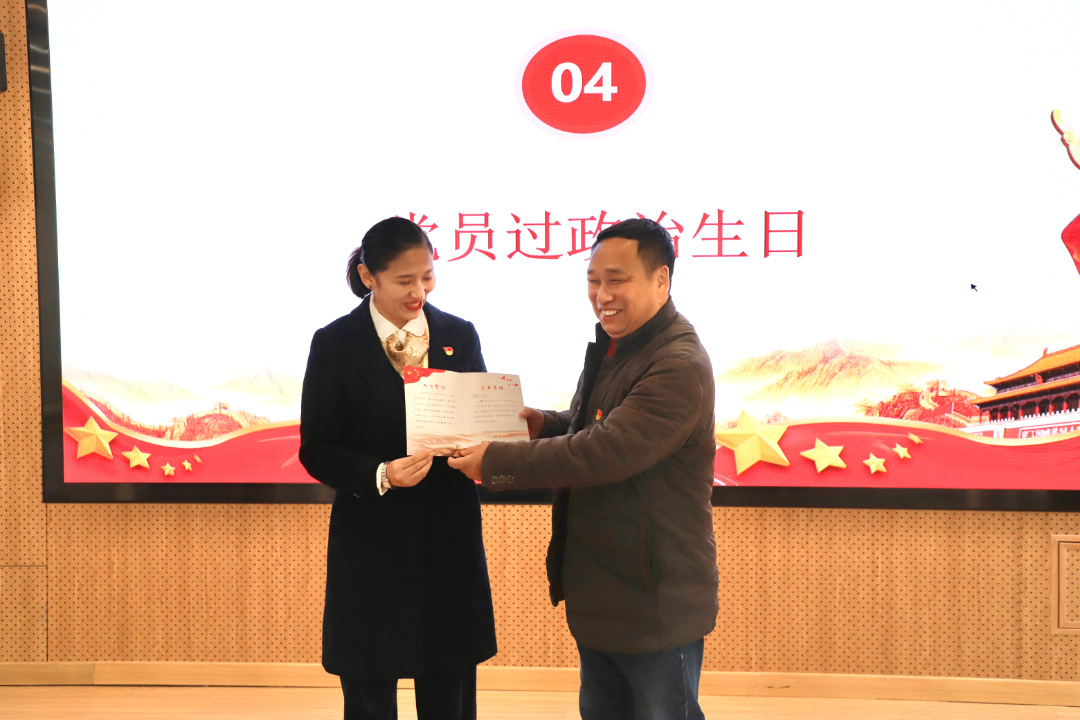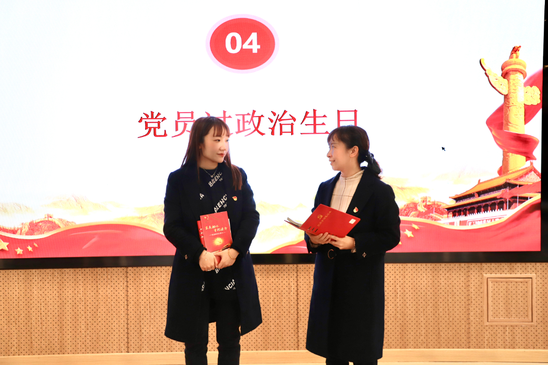 全体党员为郭梦、刘诗慧、陈旭同志过了一个难忘的政治生日,副校长吴昌全同志为她们赠送了政治生日贺卡。郭梦、刘诗慧和陈旭同志分别上台讲述了自己的入党初心。