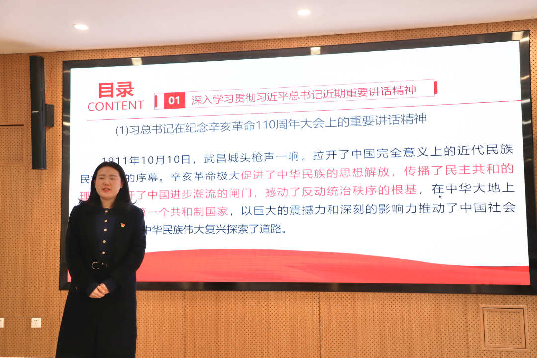 首先,蒋励思同志带领大家学习了“习近平总书记在纪念辛亥革命110周年大会上的重要讲话精神”。党员同志们深刻领会了辛亥革命的重大意义,并将积极响应号召,大力弘扬爱国主义精神,树立高度的民族自尊心和民族自信心,铸牢中华民族共同体意识,广泛凝聚中华民族一切智慧和力量,形成海内外全体中华儿女万众一心、共襄民族复兴伟业的生动局面。